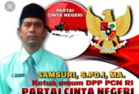 Jakarta | Sosok Pendiri sekaligus Ketua Umum Partai Cinta Negeri (Samsuri, S.Pd.I., M.A.) dideklarasikan sebagai Calon Presiden Republik Indonesia untuk Pemilihan Presiden (Pilpres) 2029…