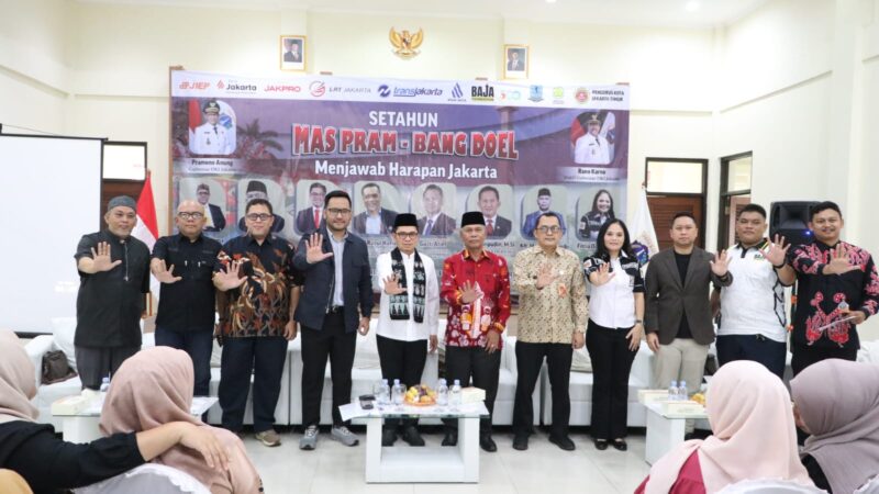 Jakarta – Kegiatan “Setahun Mas Pram – Bang Doel Menjawab Harapan Jakarta” yang digelar di Gedung Sanggar Krida Wanita, Rawamangun, Jakarta Timur, pada 13 Februari 2026, berlangsung semarak dan penuh antusiasme. Forum refleksi tersebut menjadi ruang silaturahmi sekaligus dialog terbuka antara pemerintah dan masyarakat, serta dihadiri sejumlah tokoh penting dari unsur pemerintahan, legislatif, BUMD, organisasi keagamaan, kepemudaan, hingga lembaga riset.